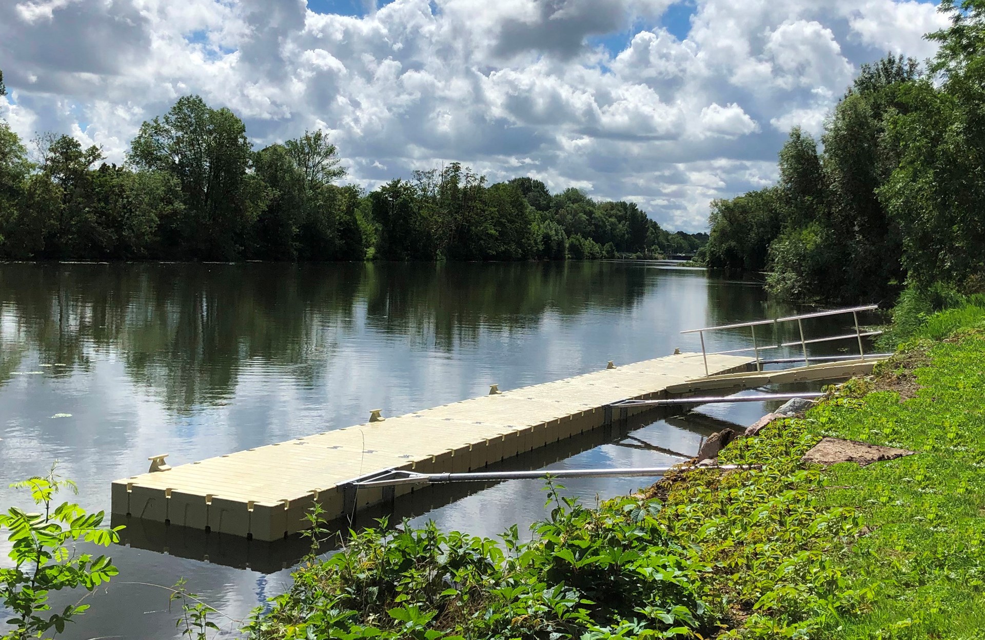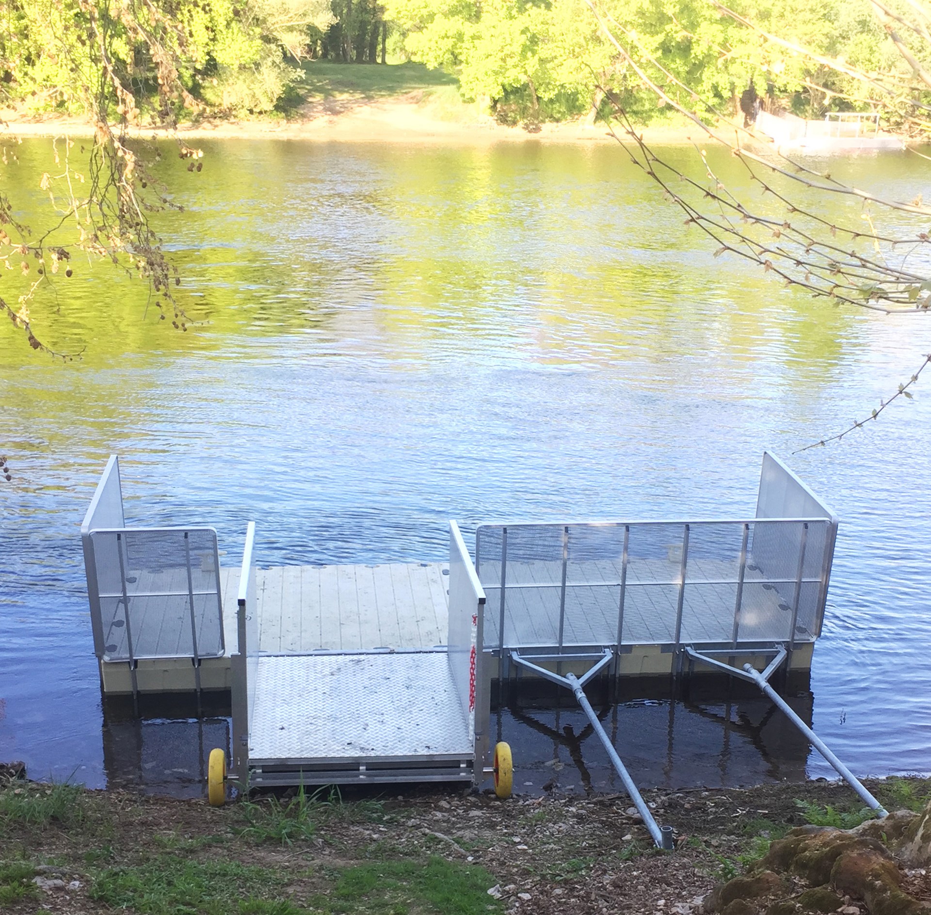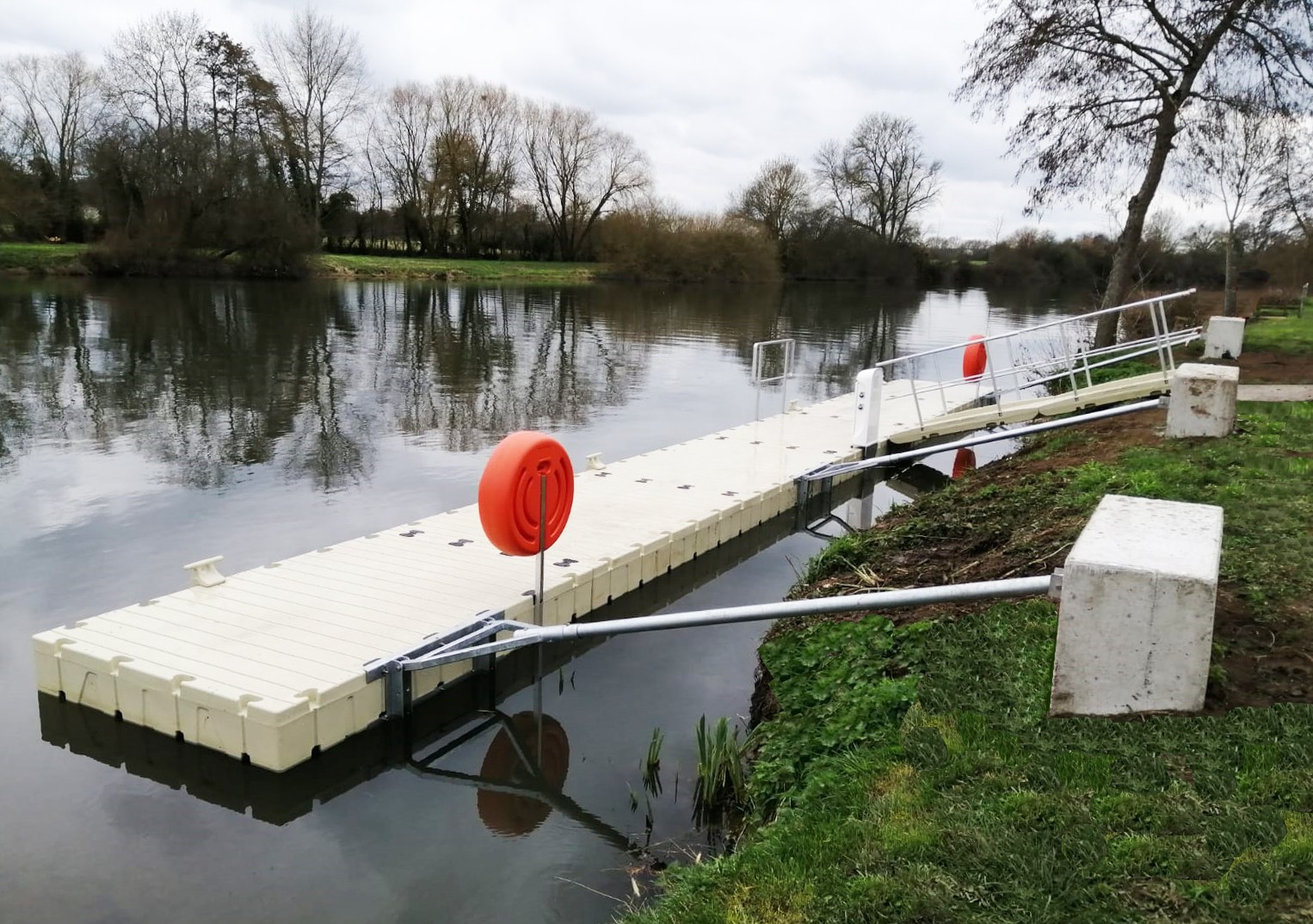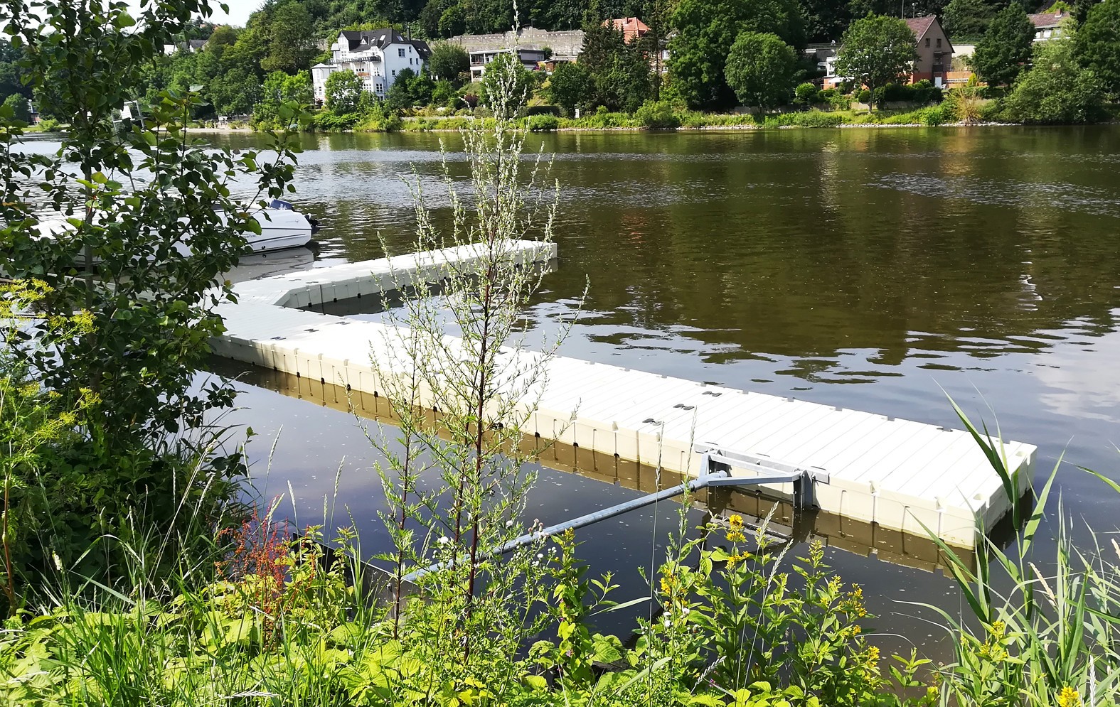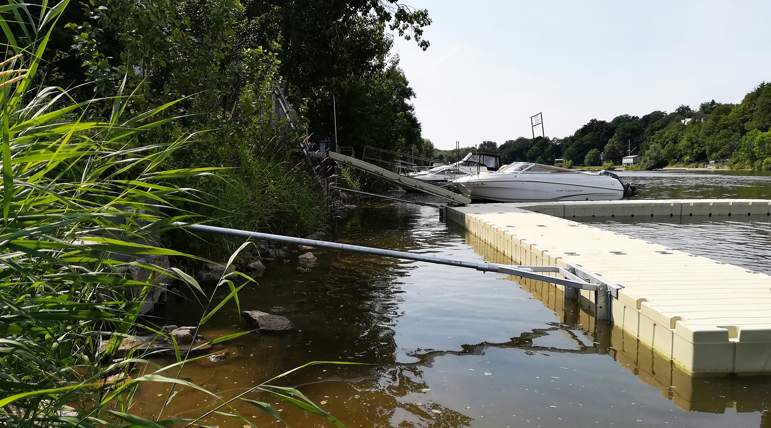 3m oder 6m langes verzinktes Stahlrohr mit 60mm Ø oder 90 mm Ø, das den Ponton mit dem Ufer verbindet.