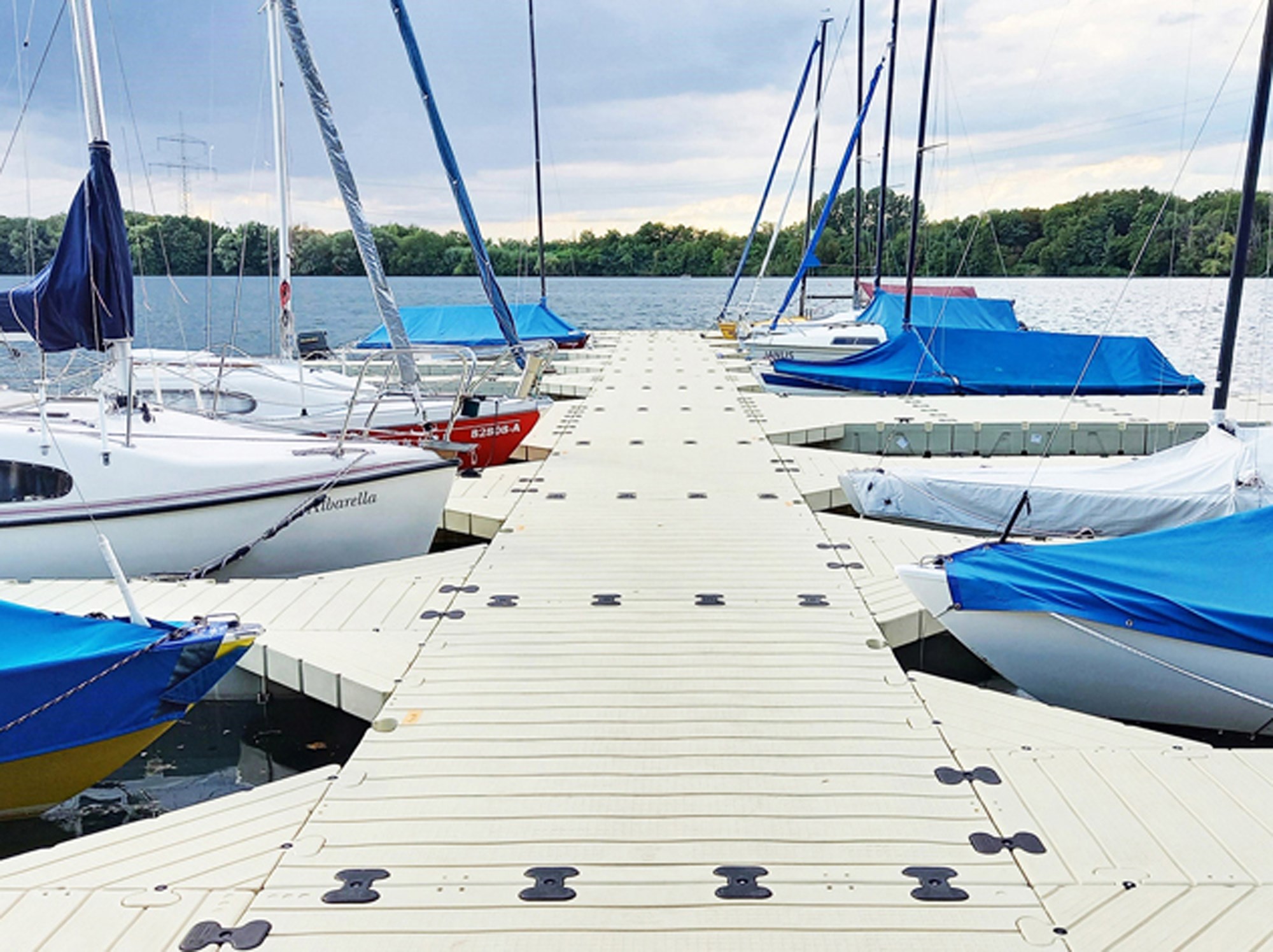 Les sections de ponton RotoDock sont réalisées en polyéthylène basse densité. Elles se déclinent en 4 modèles standards, monoblocs, à assembler à l’aide de coupleurs, au départ desquels toutes les configurations peuvent être réalisées